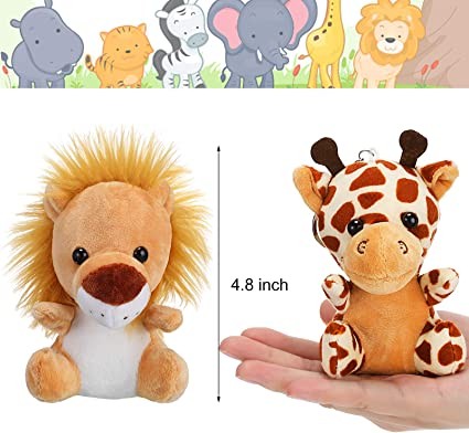 • EASY TO CARRY: Each jungle animal plush toy is 4.8 inches/12cm, the right size, easy to carry anywhere, anytime, and can also be used as a decoration for bedrooms, school bags, keys, classrooms, etc.